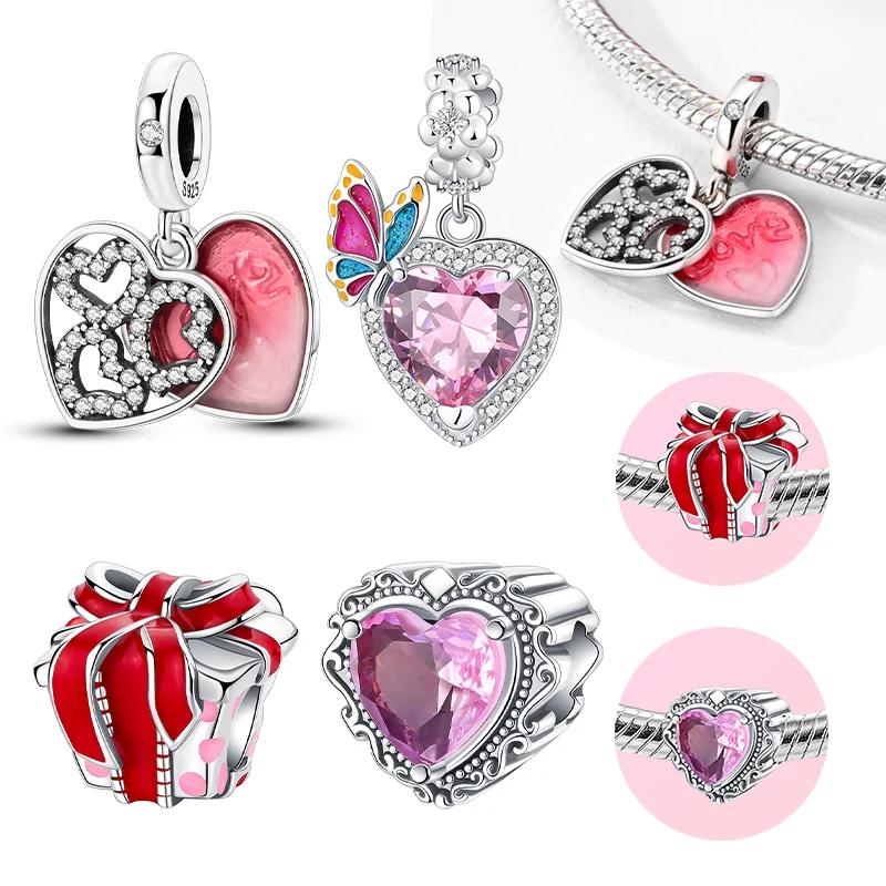 Copper Colors Pink Heart Charm Gift Butterfly Bead Charms Sparkling Zircon Compatible With Authentic Bracelets Do It Yourself Fine Jewellery Gift for