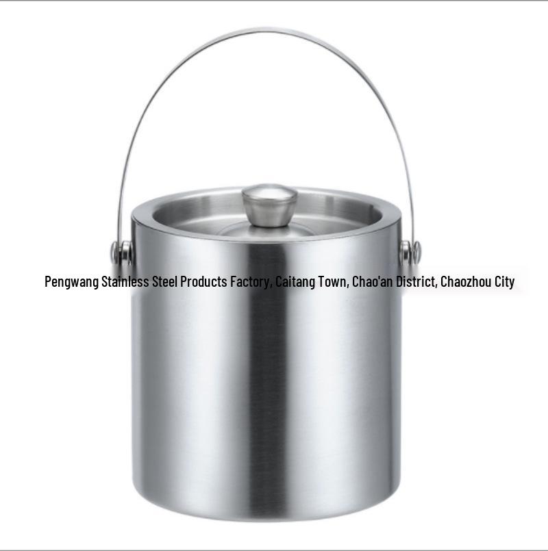 304 Stainless Steel Double-Layer Ice Bucket with Handle & Lid for Beer, Champagne & Wine