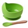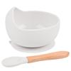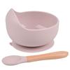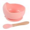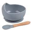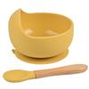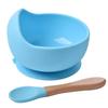 Silicone Baby Bowl & Spoon Set with Wooden Handle and Suction Cup
