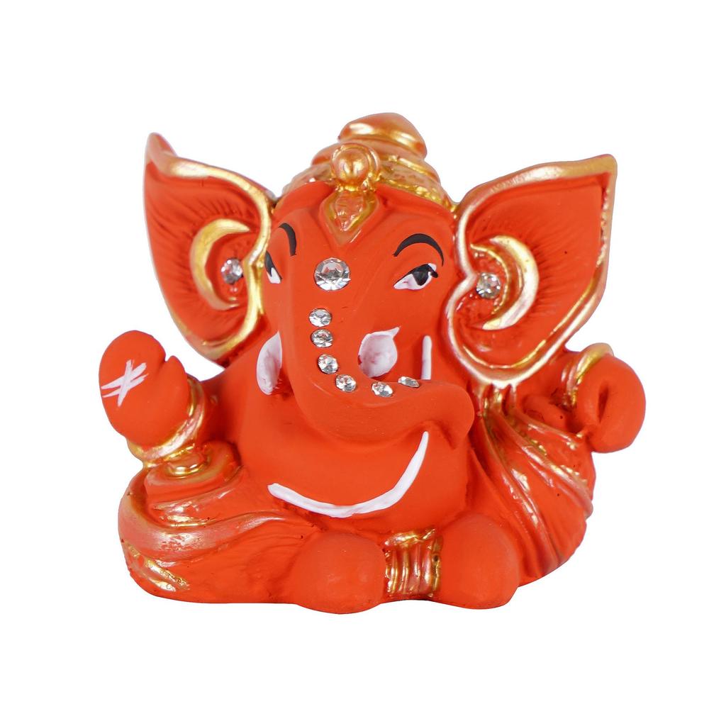 Enhance your surroundings with divine positivity using this beautifully designed Mini Ganesha Idol. Crafted with intricate detailing, this idol features vibrant orange color with elegant gold accents and stone embellishments, symbolizing prosperity, wisdom, and good fortune.