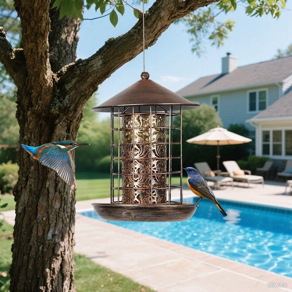Birdhouse Large Capacity Garden Bird Feeder Heavy Duty Iron Bird Feeding Equipment Hanging Squirrel Proof Bird Food Bowl Balcony