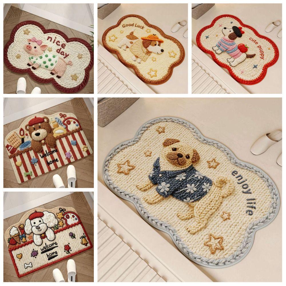 New 40*60cm Diatom Mud Mat Woven Texture Cartoon Design Puppy Mat Absorbent Material Quick-Dry Feature Non-Slip Rug Bathroom Use