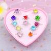 Children's Adjustable Rhinestone Ring Set - Gift Box of Gemstone Finger Jewelry for Girls