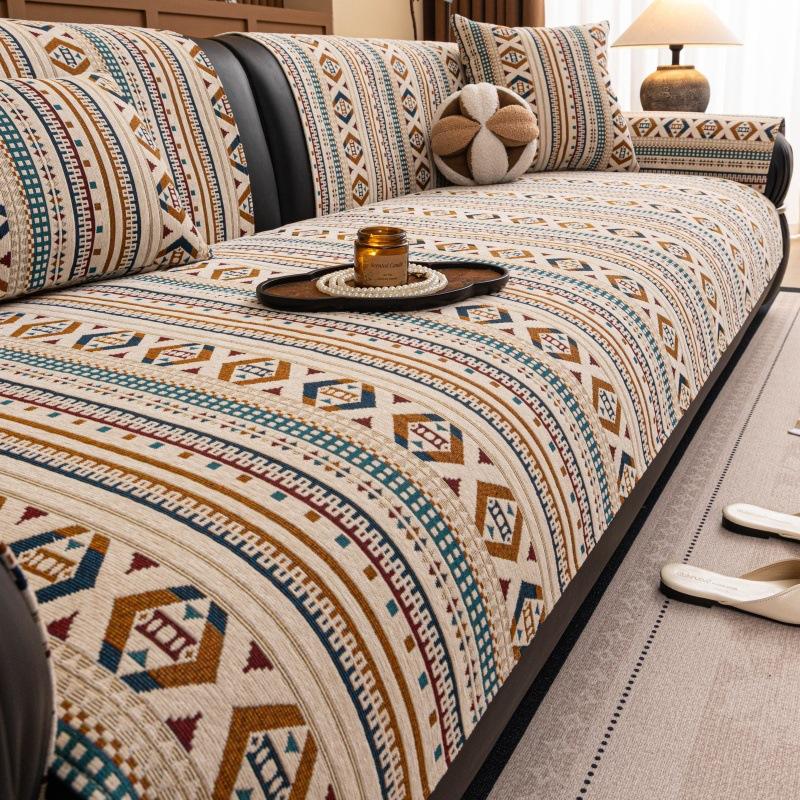 Bohemian-Style Chenille Sofa Cushion Non-Slip One-Piece Cover Cat-Scratch Resistant All-Season Living Room Sofa Protector