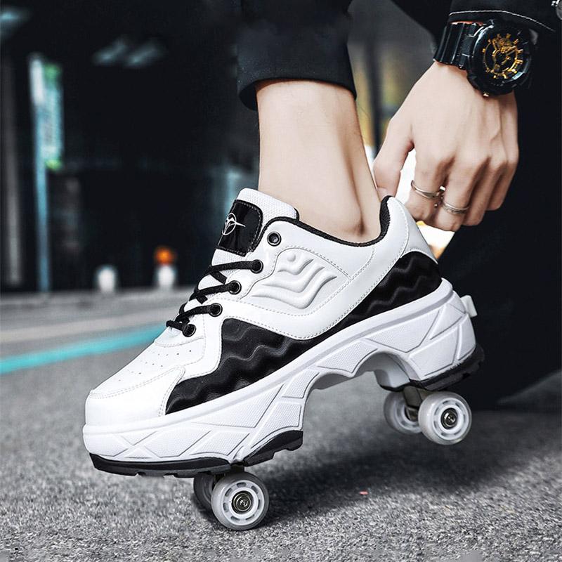 Parkour Shoes 4 Wheels Deformation Roller Skating Shoes Kids Adults Unisex Sneakers Street Urban Fitness FSK Quad Skating Shoes
