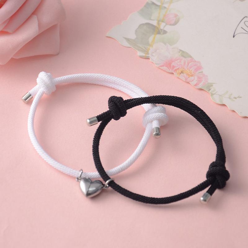 Couple Bracelet - Heart-shaped, Made of Milan Rope, with Multiple Colors and Adjustable String. Hand-woven Bracelet.