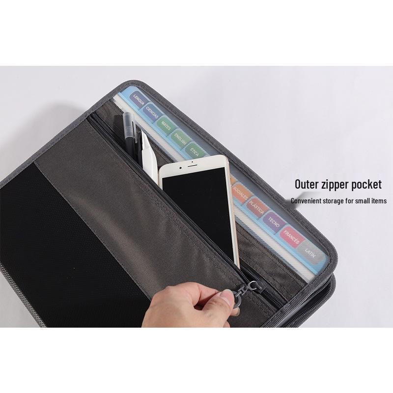 A4 Double Zipper Accordion File Bag, 13-Pocket Waterproof Student Folder