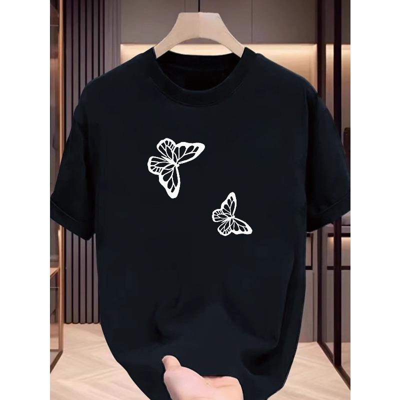 European Sizes Summer Butterfly Pattern Solid-color T-shirt for Men - Simple Design - T-shirt Top
