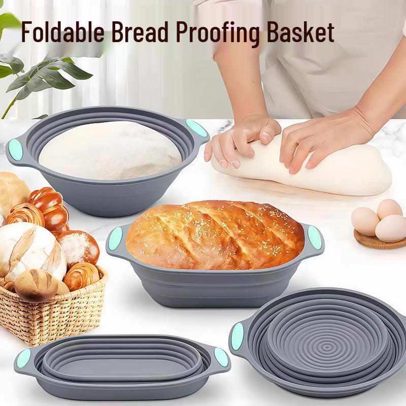 European Style Silicone Bread Fermentation Basket, Foldable Imitation Rattan Dough Fermentation Bowl.