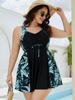 This Plus Size Two-Piece Skirt Swimwear is designed for women seeking comfort and style without compromising coverage. Crafted from high-quality polyester, this swimwear features a printed design that adds a touch of elegance. The outfit includes slimming boyshorts that provide a flattering fit, offering tummy concealing benefits to enhance your silhouette. The conservative style is perfect for those who prefer a more modest look, making it an ideal choice for vacations or hot spring getaways.