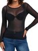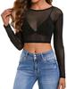 Introducing our alluring see-through mesh long sleeve top, crafted from high-quality mesh material for a fresh and sexy look. This slim-fit design features a solid pattern and a flattering round neckline, making it a versatile addition to your wardrobe. The breathable mesh fabric ensures comfort, while the long sleeves add a touch of elegance. Perfect for layering or as a standalone statement piece, this top effortlessly combines style and sophistication. Ideal for evenings out or any occasion where you want to make a bold impression.
