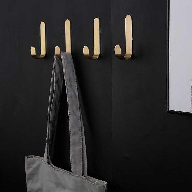 Nordic Style Pure Brass J-Shaped Adhesive Hook for Bathroom, Toilet, or Kitchen.