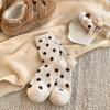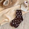 Women's Mid-Calf Polka Dot Brown Wool Socks - Warm, Thickened, Japanese Style for Fall/Winter