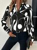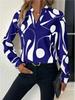 Women's Printed Cut-out Collar Casual Long Sleeve Shirt