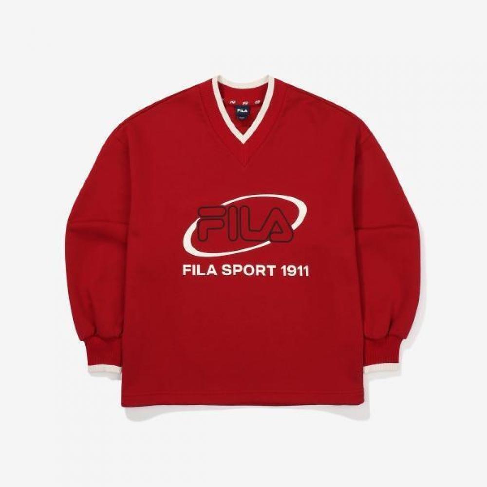 The FILA Big Logo Cotton Blend V-Neck Sweatshirt features a natural design and comfortable fit. This product has a V-neck shape, standard sleeve length, and is characterized by its stylish big logo detail. The outer fabric is made of a cotton and polyester blend, providing a soft wearing comfort.
