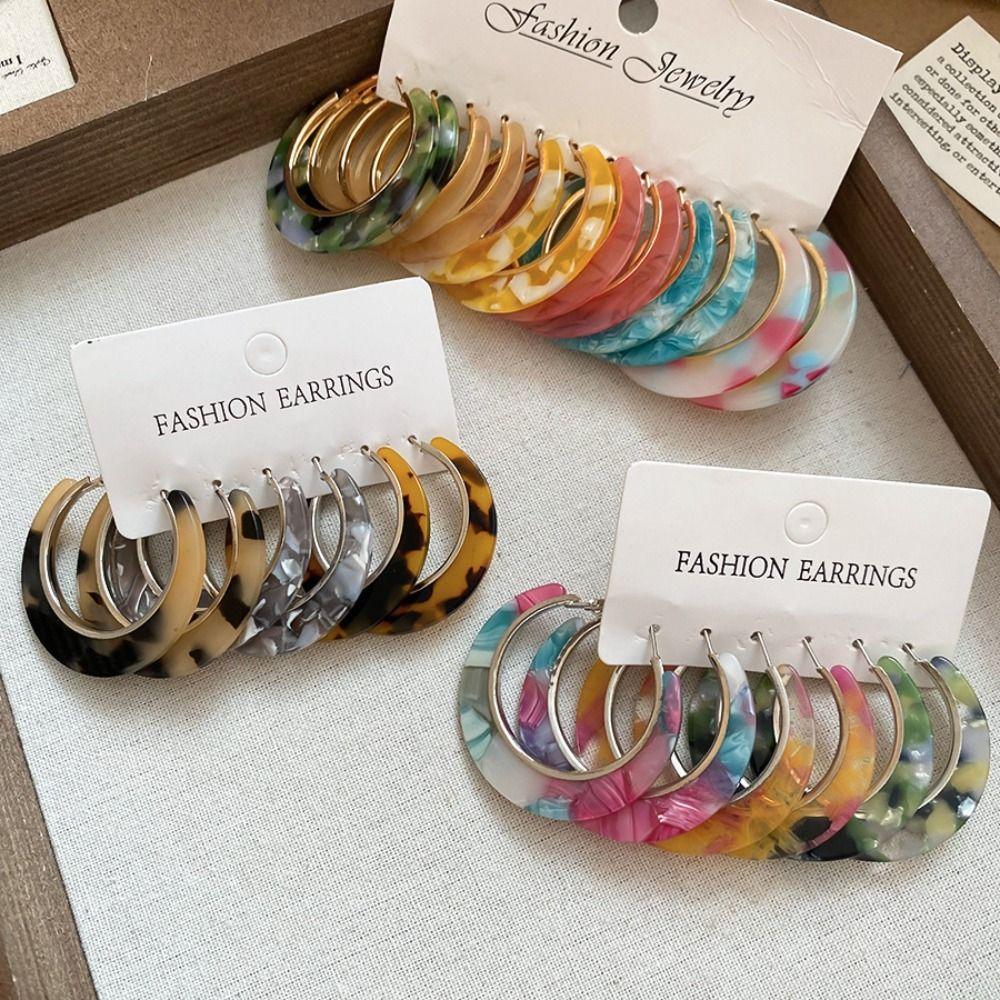 Trendy Leopard Print Earrings Acetic Acid Geometric Earrings Set Sweet C-shaped Earring Set Girls