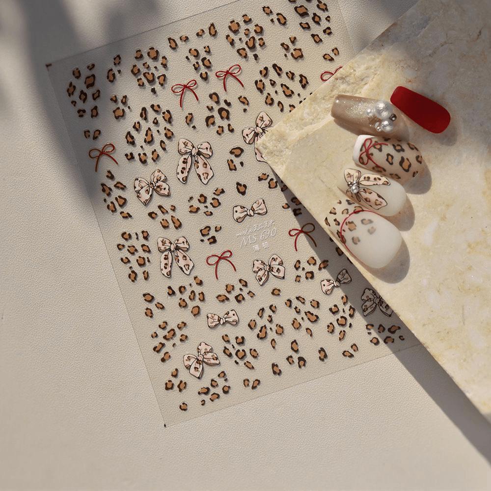 Xiaohongshu Spicy Girl Leopard Print Bow Nail Stickers - Sweet & Cool Style