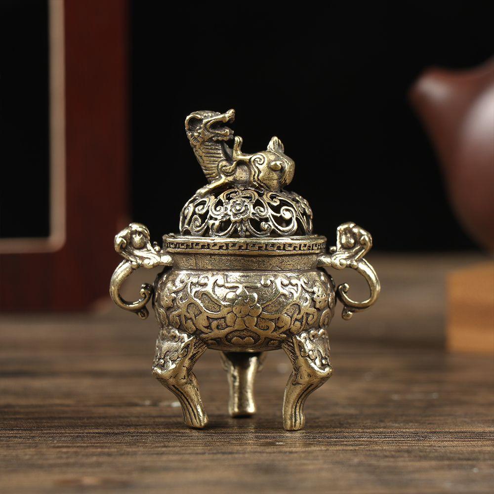 Chinese Ancient Style Home Decoration Cense Stick Holder Mini Qilin Head Hollow Lotus Retro Brass Censer Incense Burner