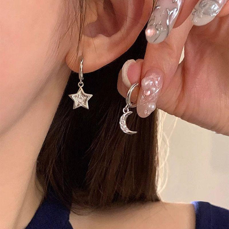 INS Cold Wind Asymmetric Star & Moon Studs Niche Temperament Versatile High-end Ear Buckle Women's Back-to-school Ambience Fashion Jewelry