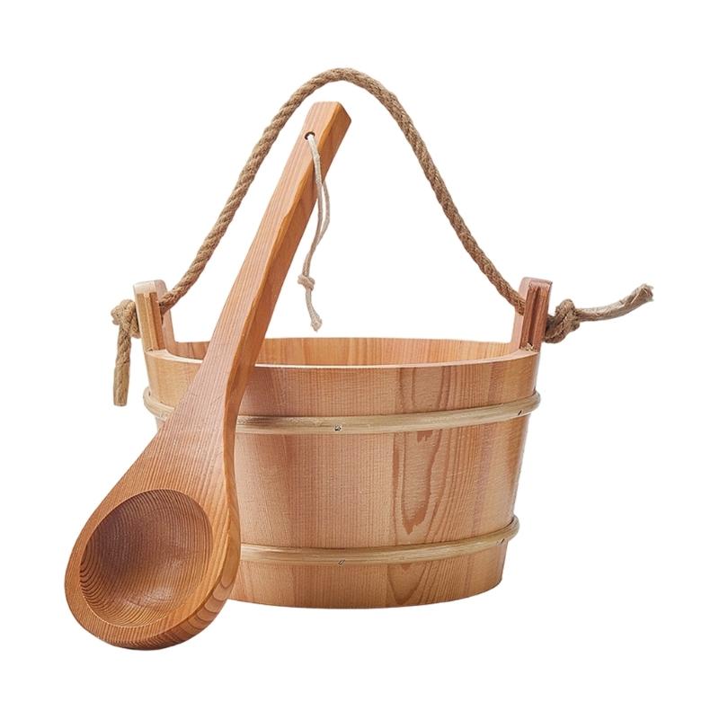 4L Large Capacity Wooden Sauna Bucket Ladle Kits Steaming Bathroom Tool Tub Barrels Portable Wood SPA Bucket Enduring