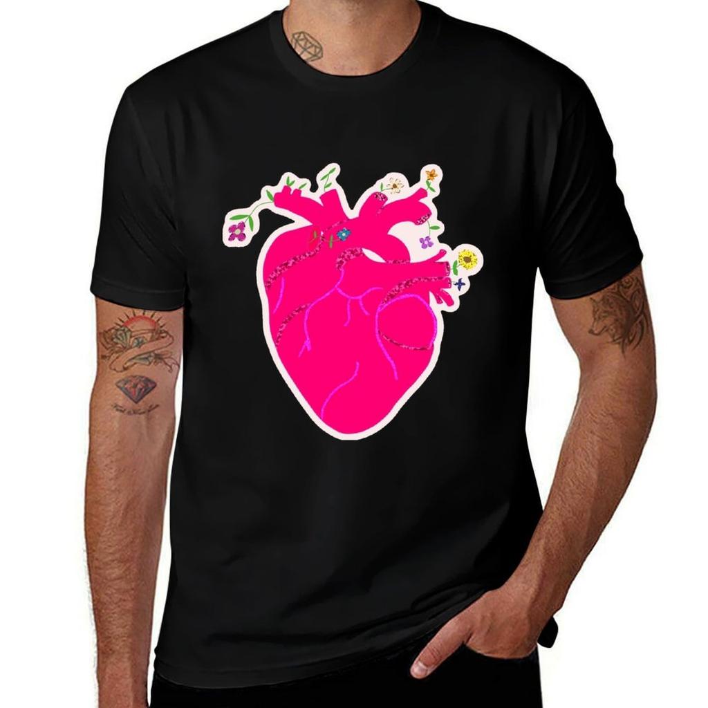 Heart with Flowers TShirt Work Comfort TShirt for Men