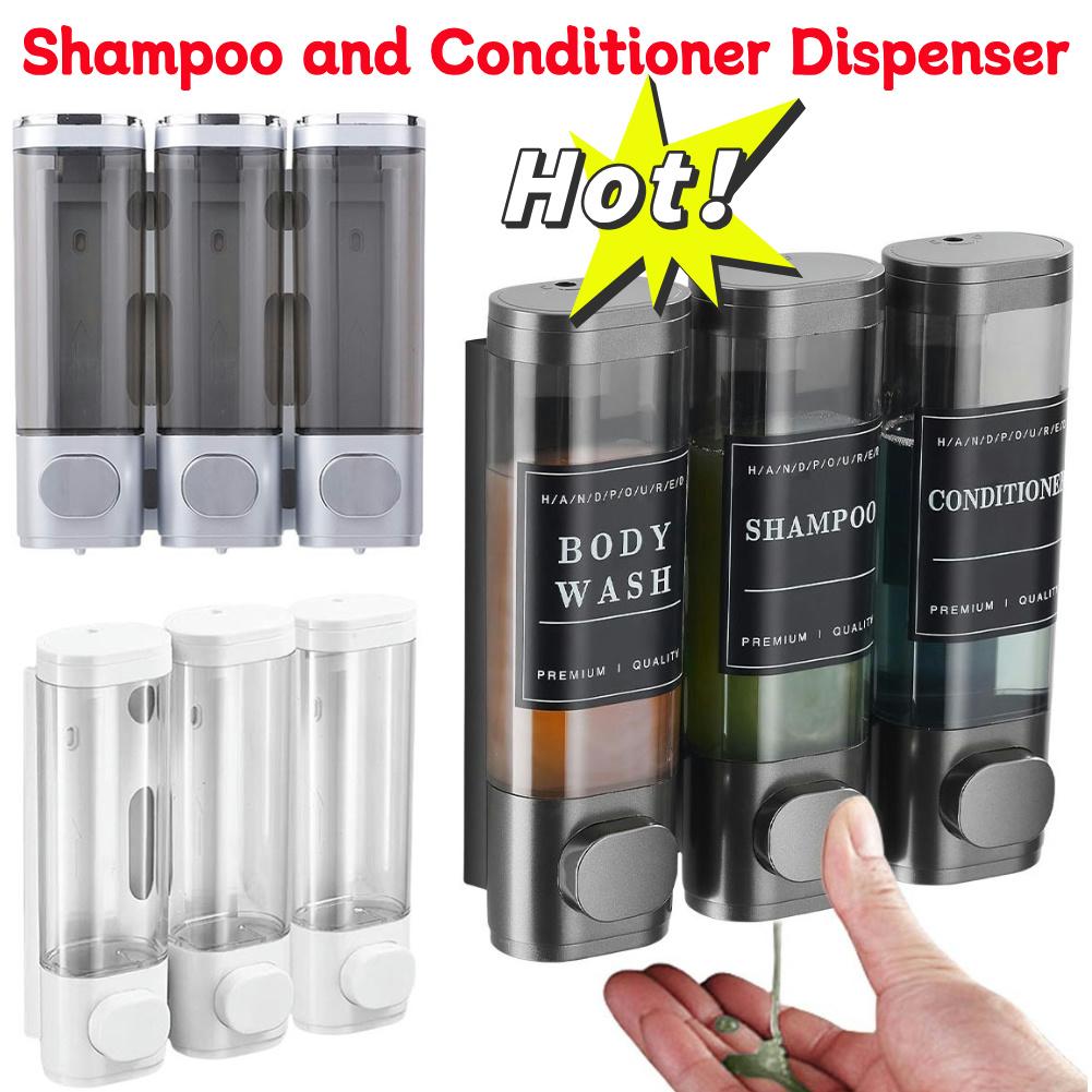 Shampoo and Conditioner Dispenser 3 Chamber Shower Soap Dispenser No Drill Shampoo Dispenser for Shower Wall-Mounted for Bathroom Kitchen Hotel