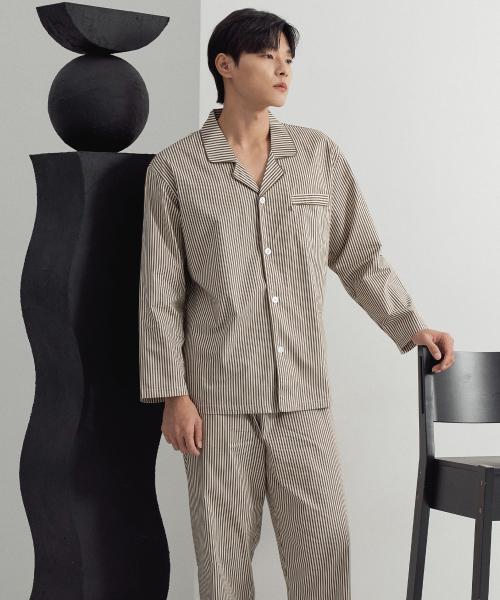 [May Flower] Khaki Style Long Sleeve Pure Cotton Men's Plus Size Pajama Set [Shipped from Korea] 100% Authentic