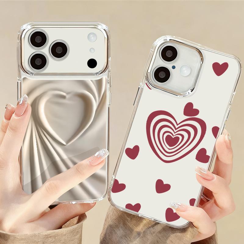 Silky Love Hearts Pattern Case For iPhone 17 Pro Max Plating Lens Frame Clear Soft Cover For iPhone 16 15 14 13 Pro Max 11 16E 17E