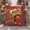 Chinatown Festive Lion Print Pattern Pillow Case Comfort Sofa Bed Silky Elegant Invisible Zipper Decorative Cushion Cover