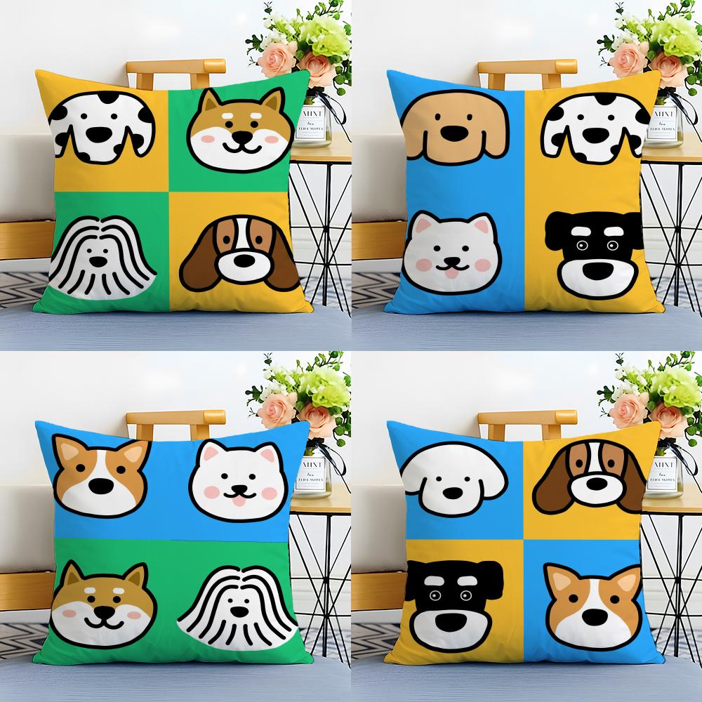 FourPoint Cute Cartoon Dog Pictures Cushion Cover Linen Pillowcase Soft for Sofa Bed Home Room Decor