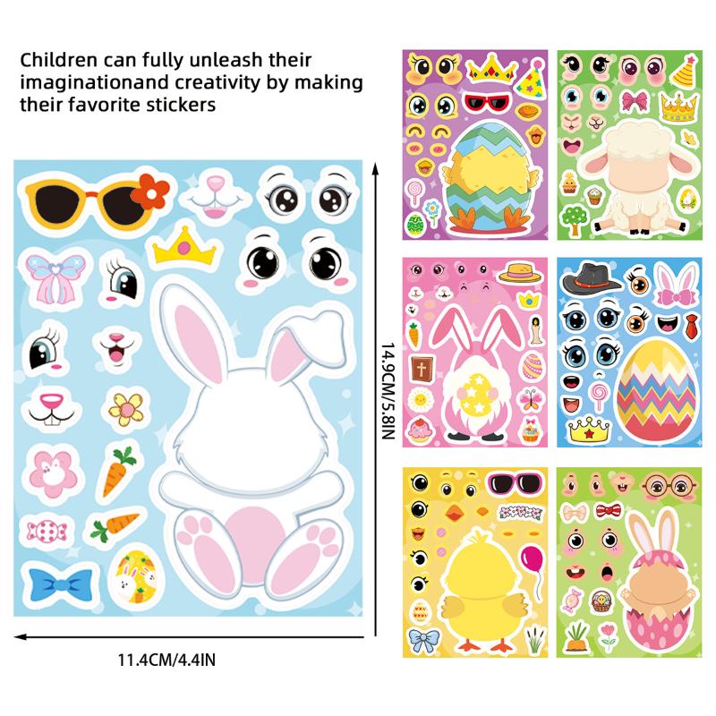 8/16 Sheets Cartoon Easter Eggs Puzzle Stickers Make Your Own Kawaii Chick Cow Rabbit Decals Children Jigsaw Toys For Kids Gift