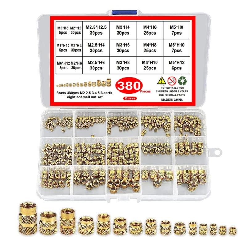 380Pcs Threaded Inserts 2/2.5/3/4/5/6mm Metric Knurled Nut Brass Embedding Nut for Printing 3D Printer Parts