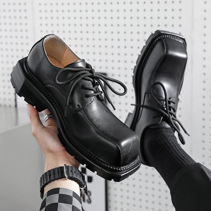 Mens Fashion Original Leather Shoes Lace-up Derby Shoe Designer Square Toe Platform Footwear Punk Nightclub Dress Sneakers