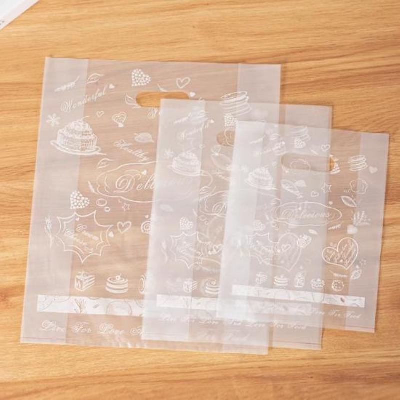 50Pcs Dessert Printed Plastic Gift Bags With Handle Gift Bag Perfect For Parties Holidays And Stores Cake Takeway Packing Bags
