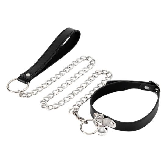 Faux Leather Choker Necklace And Leash Set for Women Adjustable Gothic Black Collar Chain Necklace with Bell for Clubwear Rave BDSM Cosplay