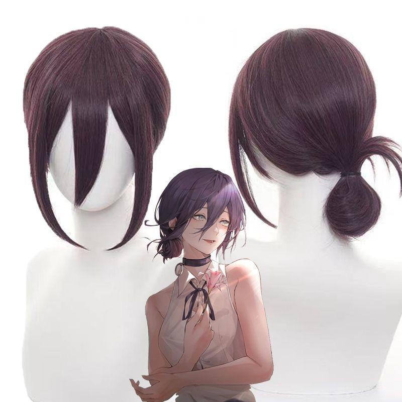Anime Cosplay Wig, Reze Purple Low Bun Short Hair High-Temperature Fiber Synthetic Hairpiece