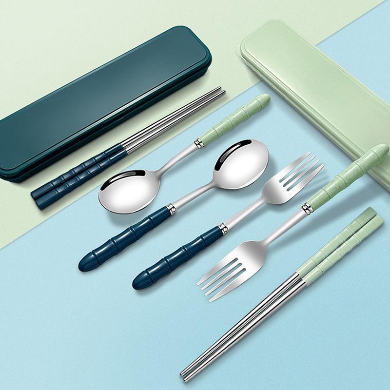 Stainless Steel Portable Cutlery Set Outdoor Camping Fork Spoon And Chopsticks Three-Piece Set