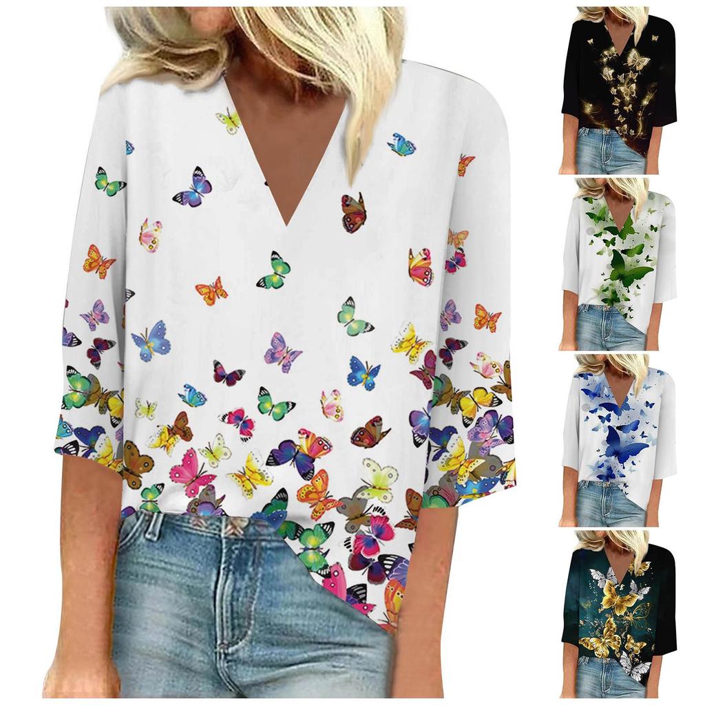 Women's Shirt Blouse Casual Loose Shirts 3/4 Sleeve Print V Neck Tops Print Tops T-shirts Tee Women's Top Printed Loose Round Neck Hollowed Out Off Shoulder Short Sleeves description 1.Material: Made of high quality material, and suitable for daily wear, made of soft fabric, polyester, light and comfortable, wardrobe , easy to dress up or take off, comfortable to wear all day. 2. Occasion: This top is perfect for everyday, outing, party, work, casual wear. It's so random you might some extra covers! This one is available in a variety of colors to suit your personal . 3. It is the best choice for gift giving 4. Wash with cold water, the size will not change much, if you have any questions when choosing, welcome to consult 5. Different monitors will have a little color difference, please don't mind product information: Gender: Female Occasion: Casual, Material: Polyester Pattern type: printing : casual, sexy Length: Regular Fit: suitable size Thickness: Standard Washing method: Hand wash in cold water, hang or dry You will get: 1 Women's short sleeve