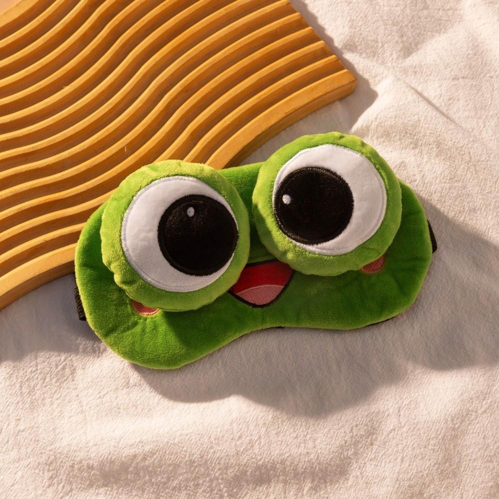 Adjustable Frog Sleep Mask Plush Sleeping Aid Eye Mask Frog Blockout Light Eye Cover Airplane