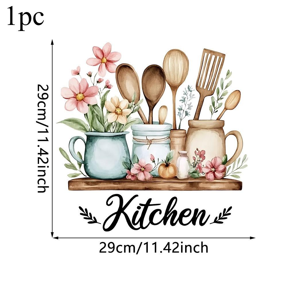 1pc Creative Kitchen Utensil Pattern Self-Adhesive Wall Sticker PVC Waterproof Home Decor Art for Kitchen Dining Room Decoration