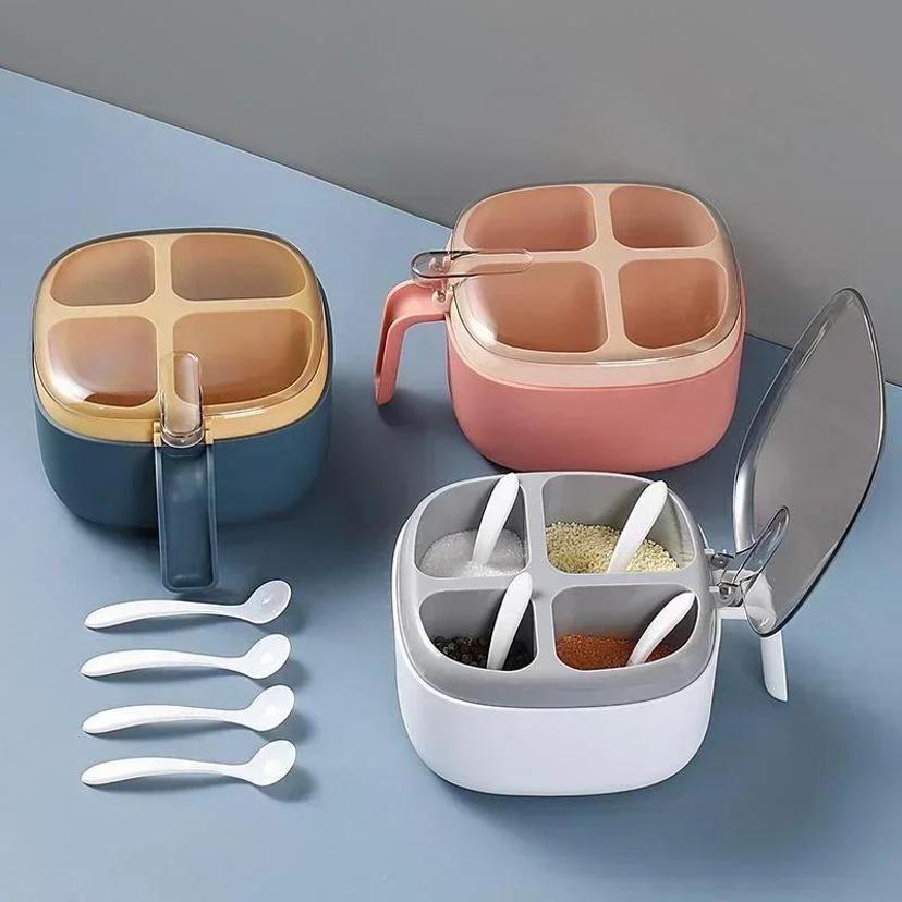 1 Pcs Four Grid Integrated Transparent Condiment Box Detachable Condiment Storage Tank Dust-Proof Kitchen Supplies Wholesale