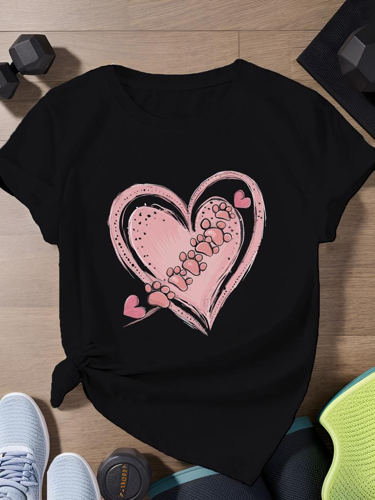 Heart with Paw Prints Womens Sports Sleeve TShirt Harajuku Sleeve Casual Tshirt Clothing Street Tops Tees Aesthetic Clothes