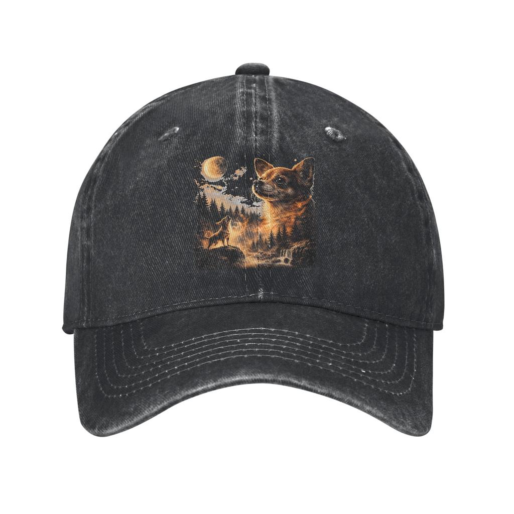 Chihuahua Howling To The Moon Sun Baseball Cap Y2k Retro FeUnisex Unisex Washed Trucker Hat Baseball Caps Birthday Present