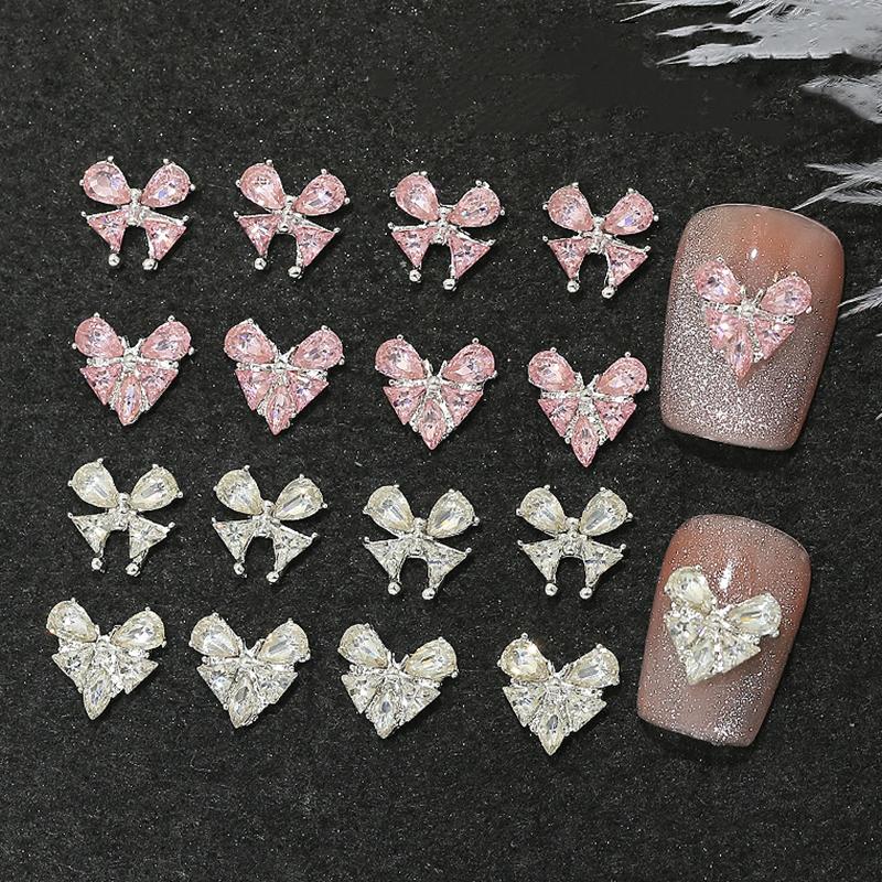 2Pcs Retro Nail Accessories With Diamond Inlaid Sparkling Zircon Large Butterfly Love Heart Colorful Diamond Love Nail Charms