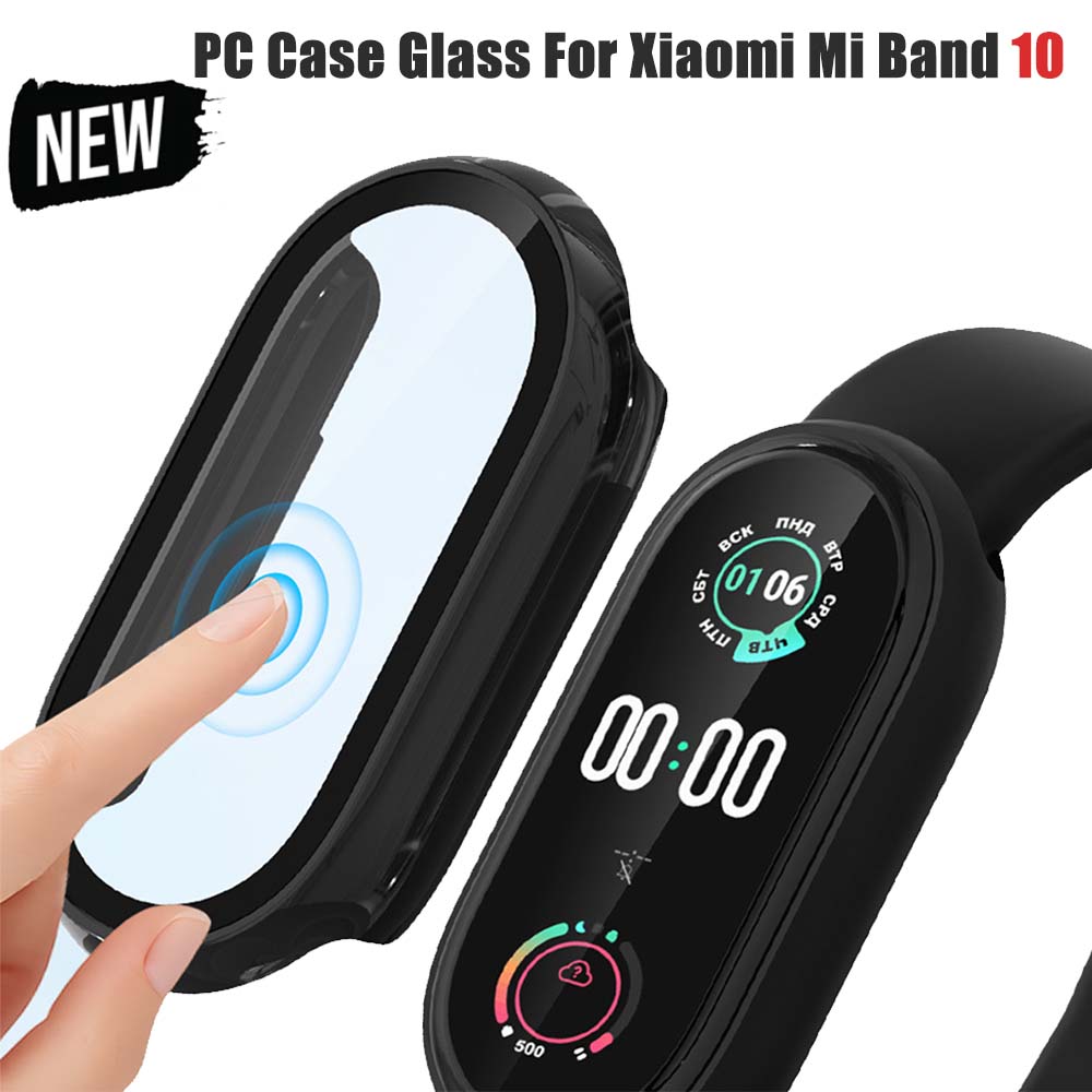 PC Case+Glass for Xiaomi Mi Band 10 All-around Bumper Anti-scratch Protective SmartBand Cover HD Screen Protector for MiBand 10