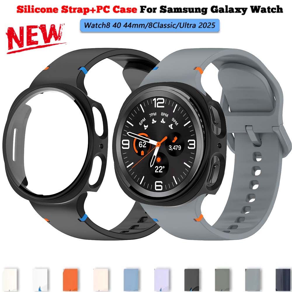 NEW Case+Silicone Strap For Samxung Galaxy Watch 8 40mm 44mm Smart Watch Bracelet Original WristBand PC Protector Watch8 Cover