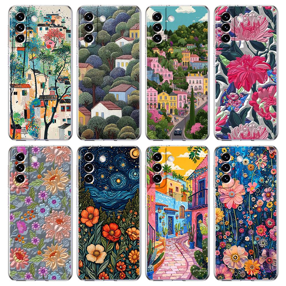Transparent Phone Case Cover for Samsung Galaxy S25 S24 S23 S22 S20 S21 FE Ultra S24 S23 S10 S10E Plus Abstract Flower Pattern