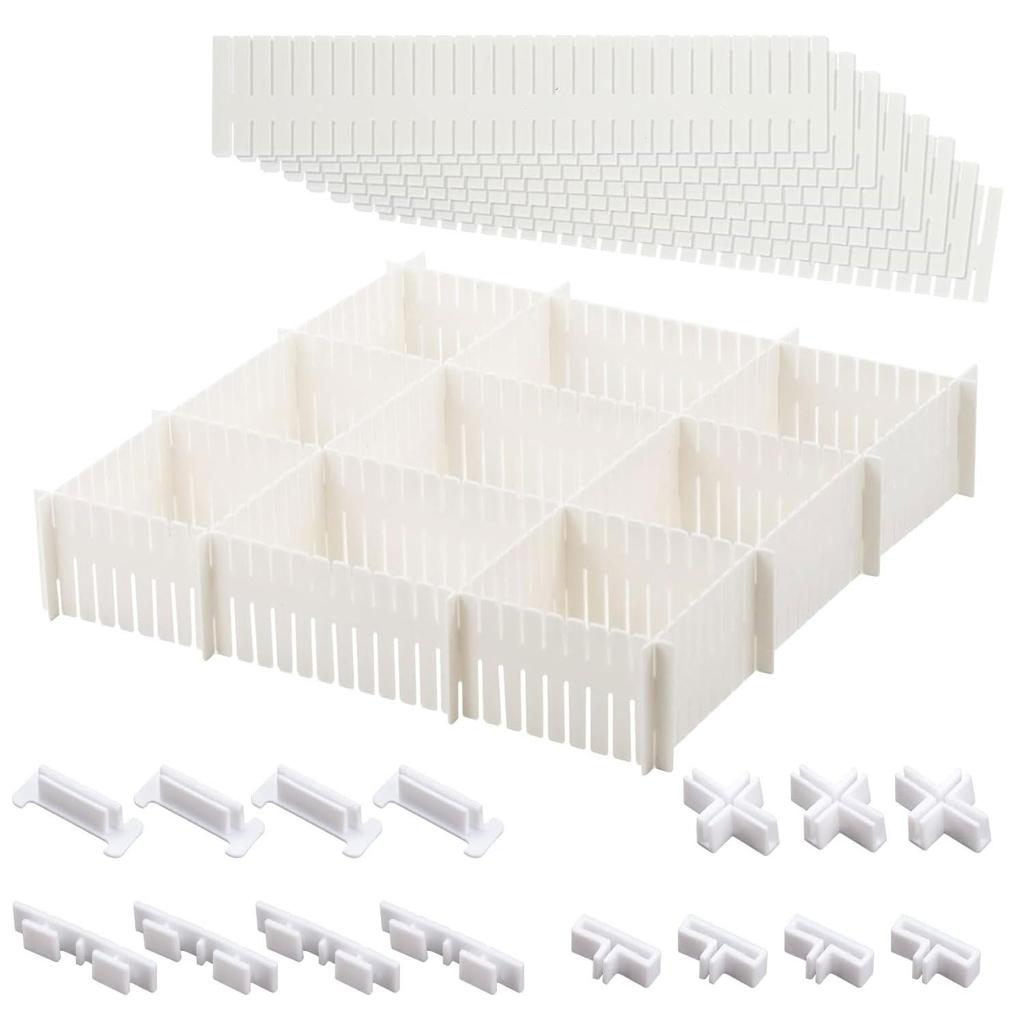 【Package Contents】12 dividers, 32x7cm, white; 15 functional clips included (4 fixing clips, 3 cross buckles, 4 three-way buckles, 4 splicing buckles)
