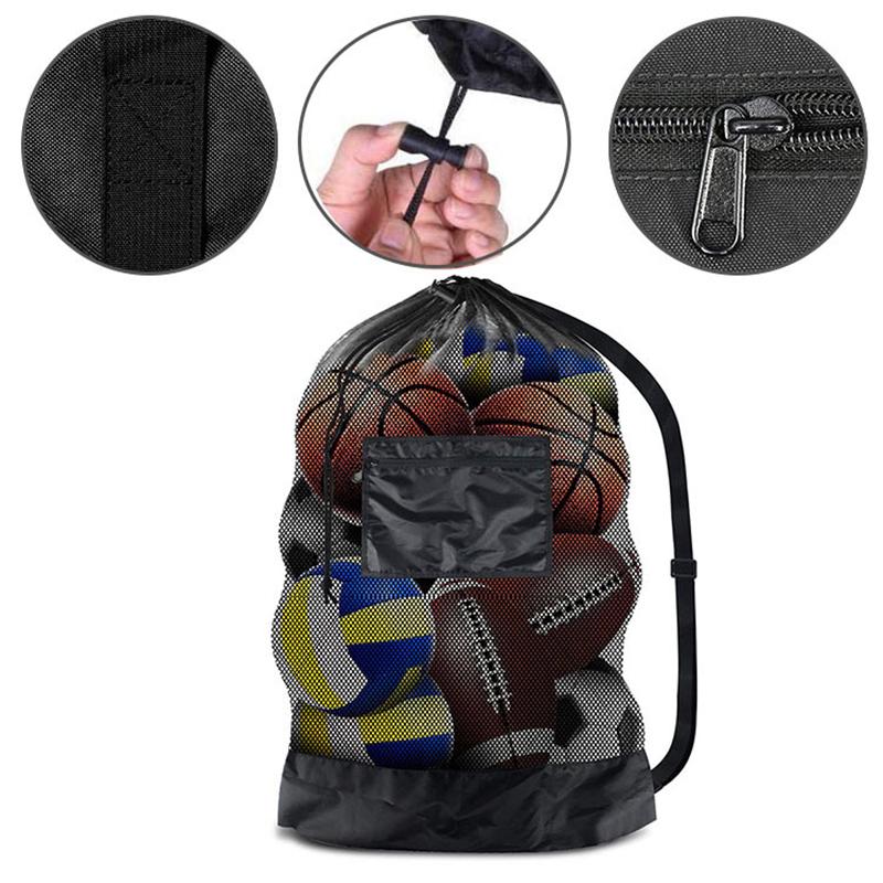 Mesh Soccer Ball Bag Extra Large Drawstring Basketball Storage Bag With Zipper Pocket Volleyball Football Net Pack Gym Bags