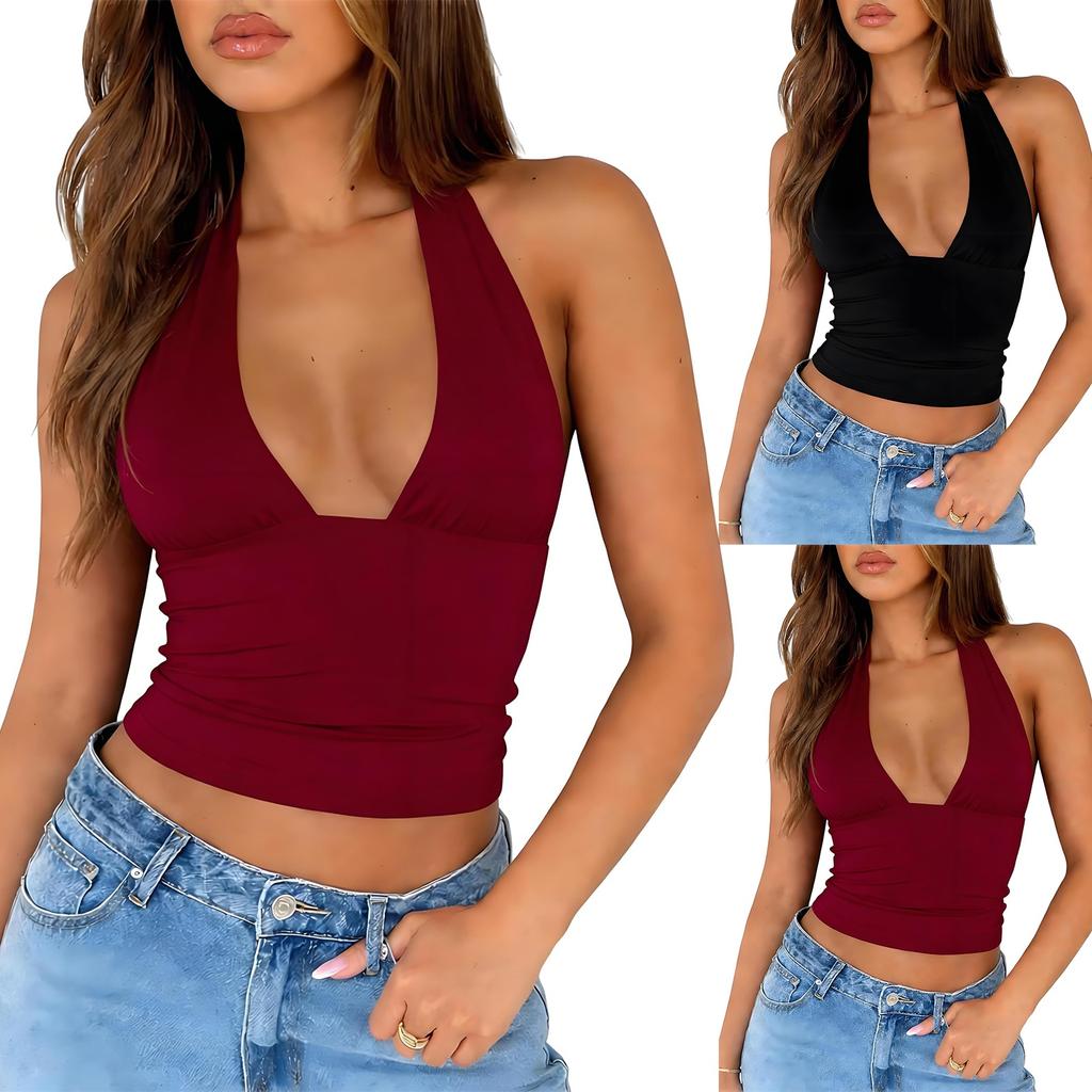 Ladies' Fashionable And Sexy Deep V-neck Hanging Neck Women's Backless Slim Fit Vest Top